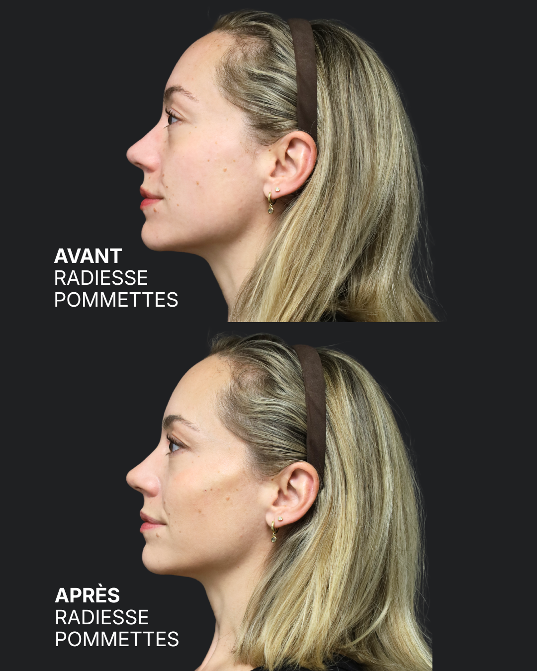 Résultat des injections des pommettes : avant / après
